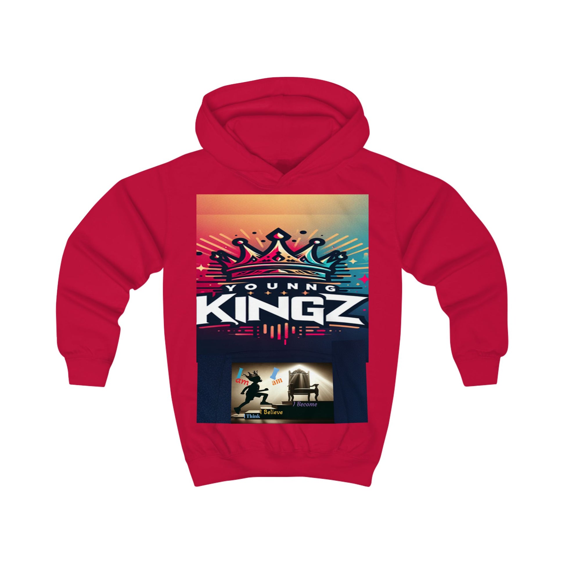 The custom kids hoodie is a hoodie for any young King. Soft cotton and quality printing make this hoodie an irreplaceable everyday item. It's made from a cotton-polyester blend. The side seams are extra durable. The front has a spacious kangaroo pocket for keeping hands warm or holding small items.